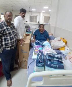 நாம் கொண்டு சென்ற வீல் சேர் மற்றும் அப்பெண்ணுக்கு மூன்று மாதம் உதவக் கூடிய டைப்பர்,பஞ்சு, டெட்டால் உள்ளிட்ட பொருட்களை ஒப்படைத்தோம்.