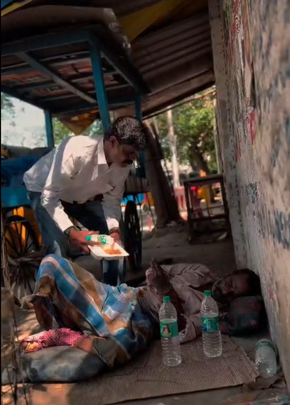 சாலையோரத்தில் பசியால் வாடிக் கொண்டிருந்த
