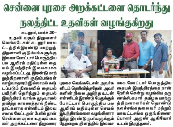கடலூர் மாவட்டத்தைச் சேர்ந்த இரண்டு மாற்று திறனாளி பெண்கள் நம்மிடம் தையல் இயந்திரம் கேட்டிருந்தார்கள்.